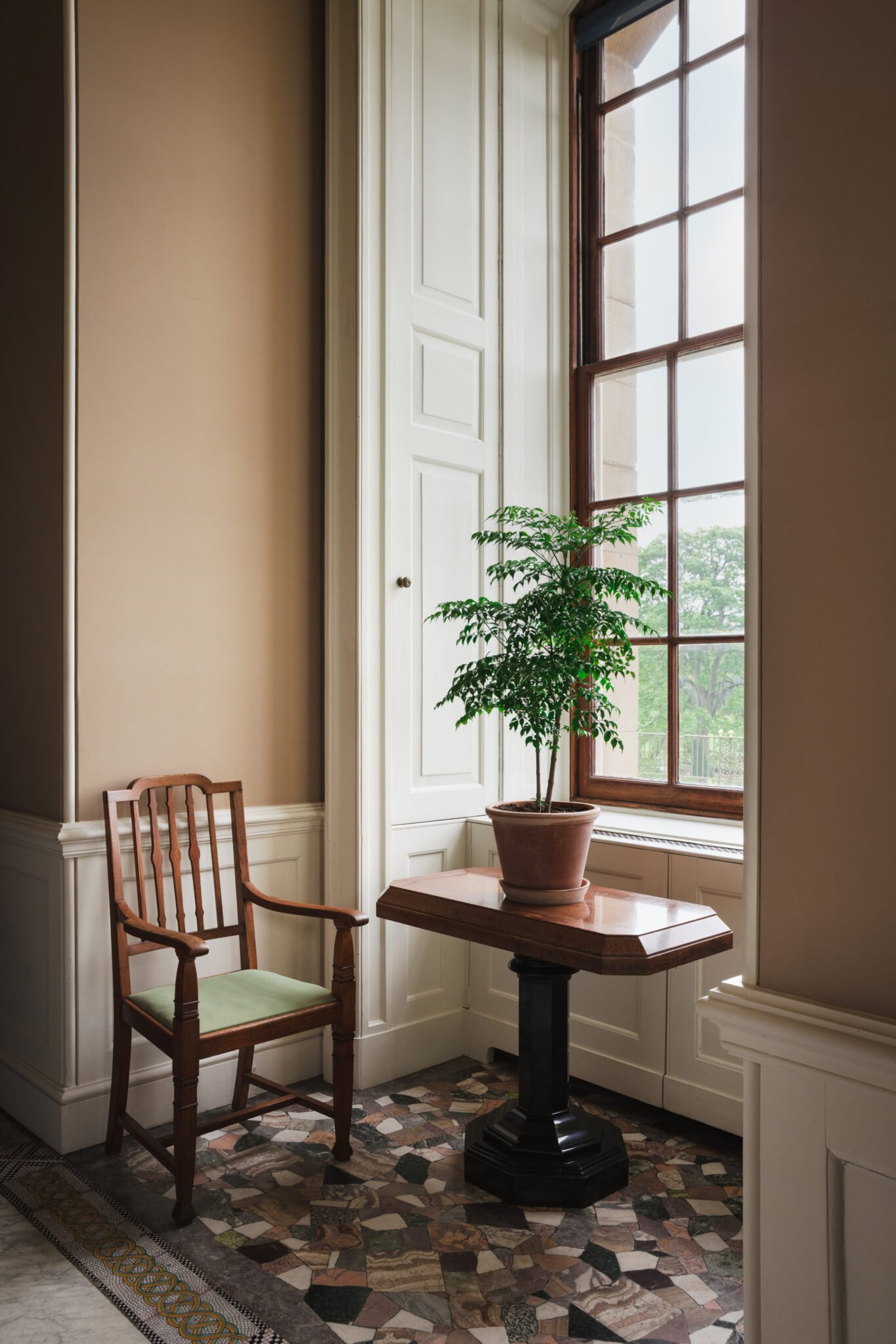 The quarry that gives Chatsworth its irresistible honey-gold hue is called Burntwood. Mined on the estate, it lends the house a radiant presence in the folds of the Derbyshire landscape and forms the warm backdrop to interiors such as the Great Staircase and the North Hall.