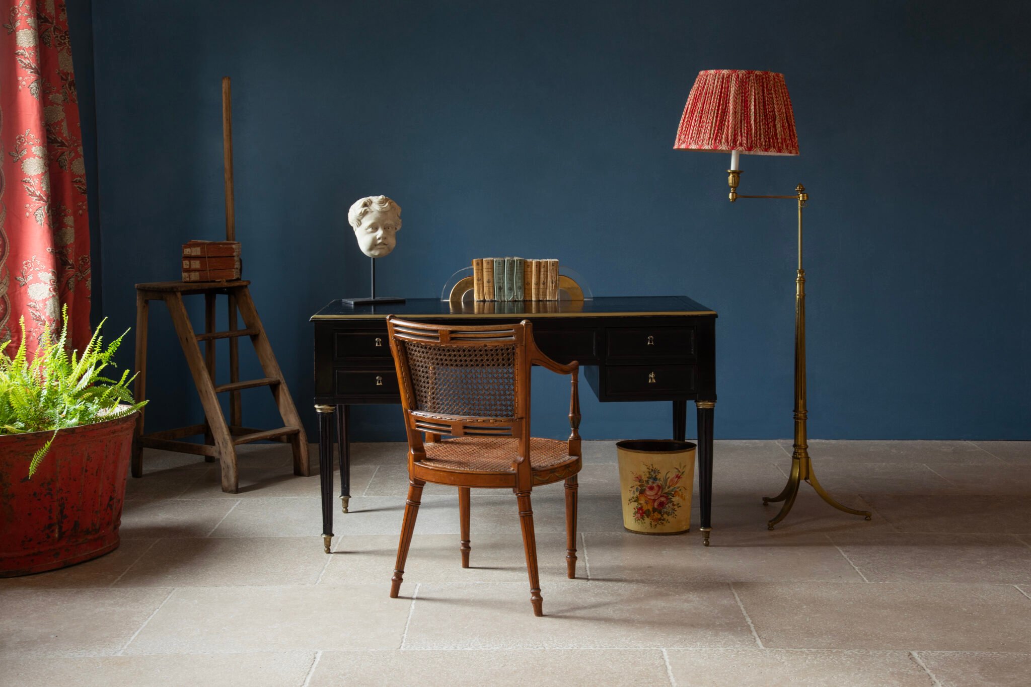 How to style: The distinctive blue of Delft is not a single hue, but the result of cobalt oxide painted over a white glaze and sealed beneath a clear one. We have mixed a strong, opaque version with the same clarity. Full of character, it’s a wonderful blue for cabinetry or for giving presence to a room.