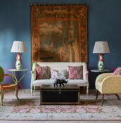 The first colour I knew I wanted to use was ‘Invisible Green’ by Edward Bulmer in the drawing room. I realised that I’ve never met a bright green room I don’t love, yet I rarely use the colour. This is the green of Babar’s coat – a shade that goes with so much, as it …