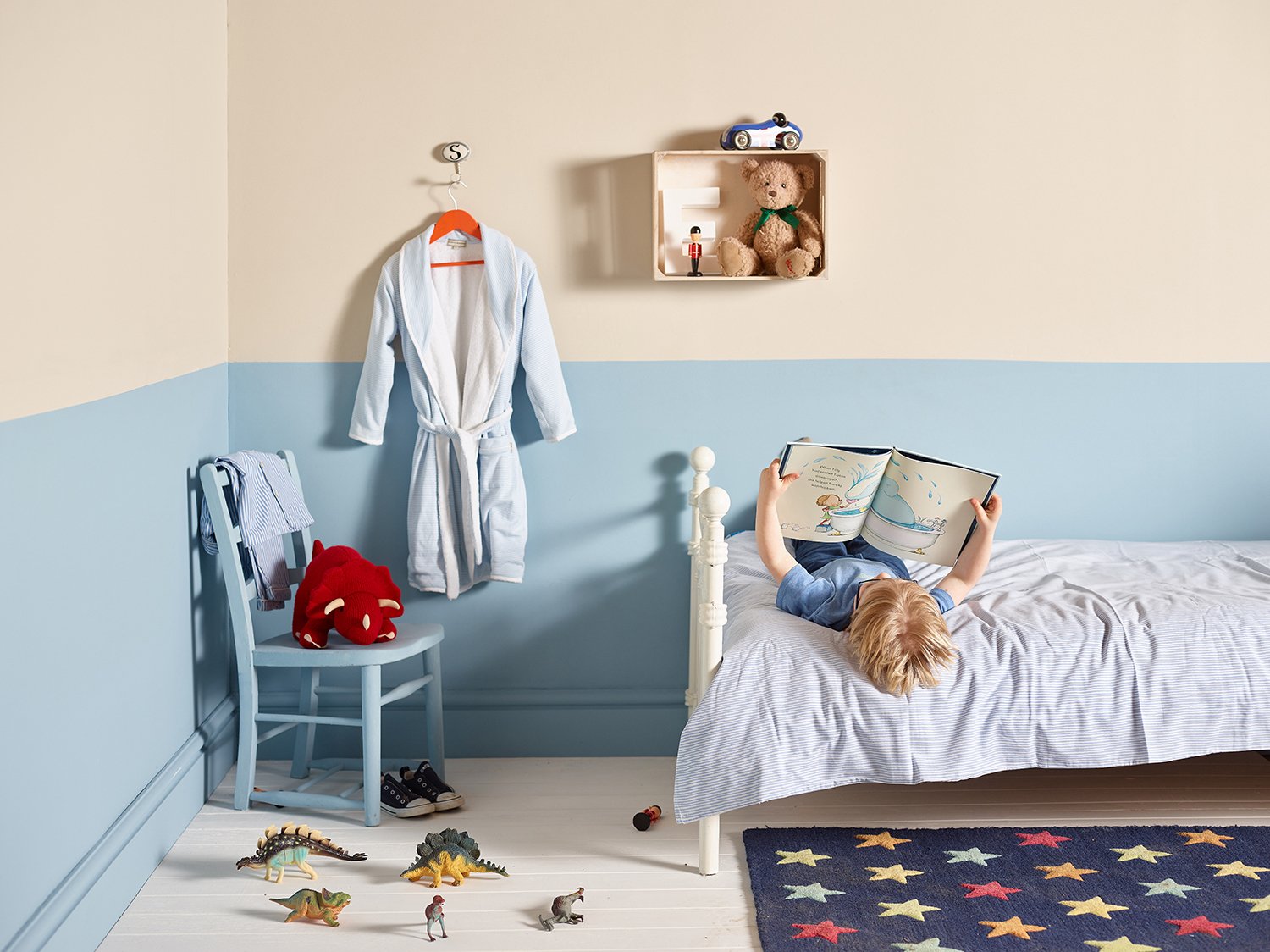 Building sandcastles at the seaside, the cornflower blue sea lapping at little toes, squeals of delight echo around the coastline. A strong and warm blue, George brings adventure into bedrooms and playrooms, allowing their imaginations to run wild. George is warmed by earth pigments so you can feel confident to fill the room by painting on walls or bring an accent of colour on a chest of drawers, book shelves or another dash of colour in your children’s room. They will love it! An earth-friendly paint, George offers tonal harmony in ultramodern interiors as in period properties allowing your walls to breathe.